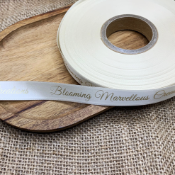 Designed for narrow applications, this 10mm ribbon is ideal for printed text, simple logos, or branding. Whether you’re wrapping wedding favours, decorating Christmas baubles, or adding a branded touch to handmade gifts, this ribbon delivers a refined, professional look.