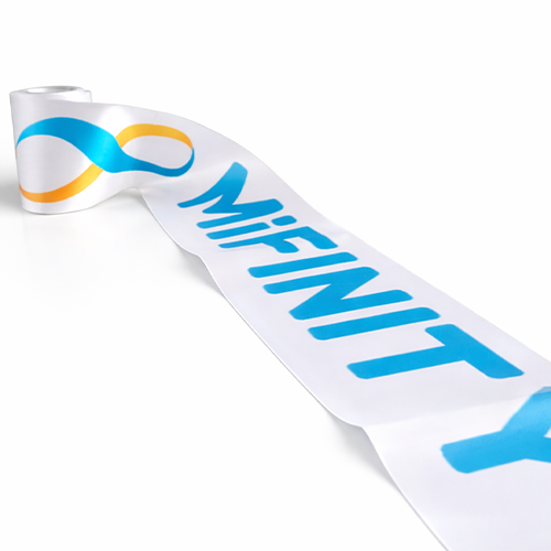 Step into a world where your brand’s visual identity is transformed into an impressive statement piece with our 100mm wide full-colour logo printed ribbons. Our double-faced white satin ribbon, resembling the most delicate silk, provides a grand scale for your branding ambitions, perfect for making a bold and memorable impression.