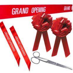 The pack arrives with Red Bows, Red Grand Opening Ribbon and Red Grand Opening Sashes as standard. We have other colours available if you prefer to match your company colours. Call us or contact us here