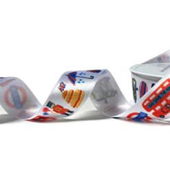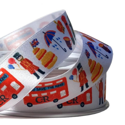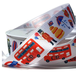 - Eco-friendly satin ribbon with a modern twist on classic British icons