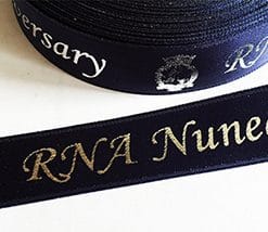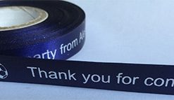 Logo Printed Onto A Navy Blue Ribbon
