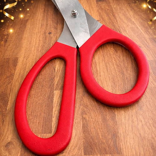 - 1 x PAIR OF LARGE CEREMINAL SCISSORS – 40cm long with RED Plastic Coated Handles. Blade Length 25cm, cut the ribbon with one cut