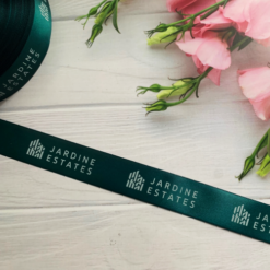 Print Logo Onto Dark Green Ribbon, Hunter Green Branded Satin Ribbons